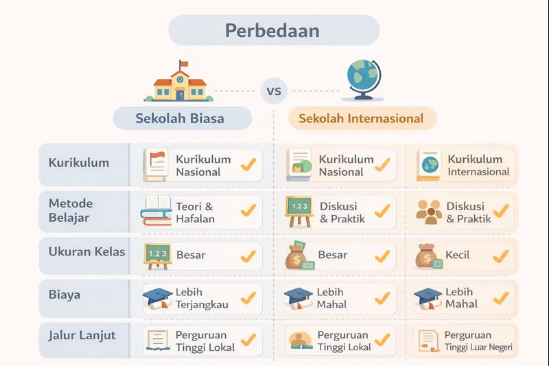 Realistisnya, sekolah internasional di kota besar umumnya berada di rentang ratusan juta rupiah per tahun, dan bisa meningkat seiring level kelas. Selain tuition, biasanya ada biaya pendaftaran, deposit, seragam, transport, dan kegiatan tertentu. Jadi, saat membandingkan sekolah, tanyakan “total biaya setahun”, bukan cuma angka tuition.
